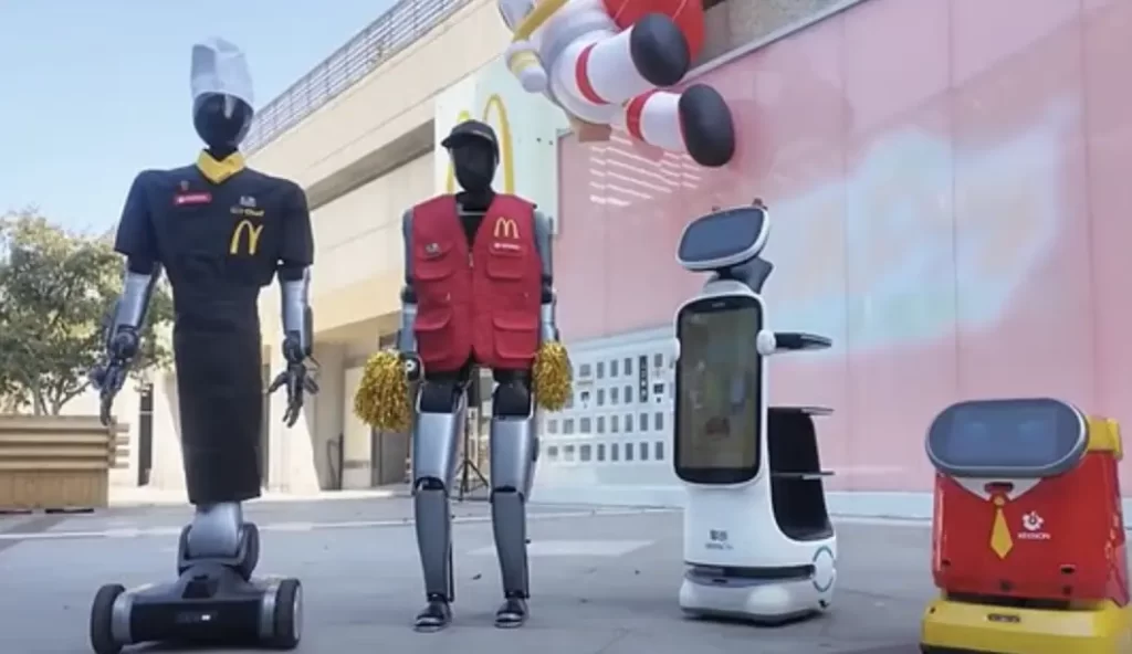 Keenon Robotics internette, ‘Robot ekibinin üniformalarını giymesini ve McDonald’s partisinin tadını çıkarmasını izleyin!’ diye yazdı. ‘İnsansı robot serimiz ekibe öncülük ediyor ve sokaklara çıkıyor.’ Bu, hizmet otomasyonunun küresel yemek deneyiminin kusursuz bir parçası haline nasıl geldiğinin ve teknolojinin her yemek zamanına nasıl daha fazla gülümseme getirdiğinin bir göstergesi.’ Videoda, bir robotun bir müşteriye ‘tamam’ işareti yapmak için başparmağını ve işaret parmağını birbirine değdirdiği görülüyor.