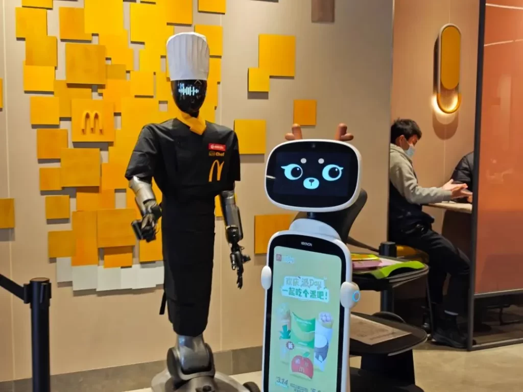 İnternette yayınlanan videolarda, müşterilerin tezgahların arkasında ikonik kırmızı ve sarı üniformalar giymiş siborglarla etkileşim kurduğu görülüyor. Üzerinde ‘şef’ yazan siyah bir üniforma giyen bir insansı robot, gelenleri karşılıyor. Diğerleri markayla özdeşleşmiş ünlü ‘M’ işaretini yapıyor ve bazı dans hareketleri sergiliyor. Bu arada, çocuklar sevimli hayvanlar kılığına girmiş diğer robotları kovalarken, restoranın etrafında yemek servisi yapıyorlar ve yerleri temizliyorlar.